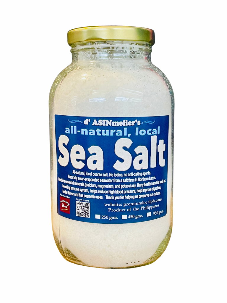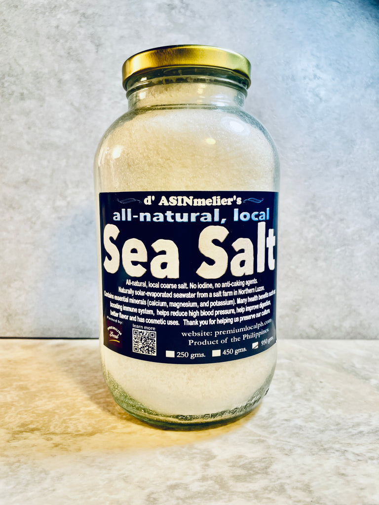 Our sea salt is from Bolinao, Pangasinan, from the largest salt farm in the country. We requested for no chemical spraying (sodium or potassium iodide), no chemical bleach and no anti-caking agents. This is just pure sea salt straight from the farm.